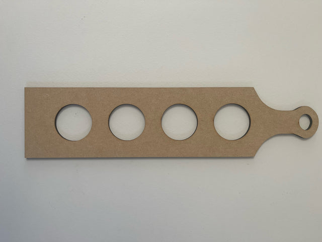 Laser cut MDF templates will allow a cost effective way for you to create your own beer flights with precision and repeatability. All you will need is one of our templates, flush trim bit  and a router table.