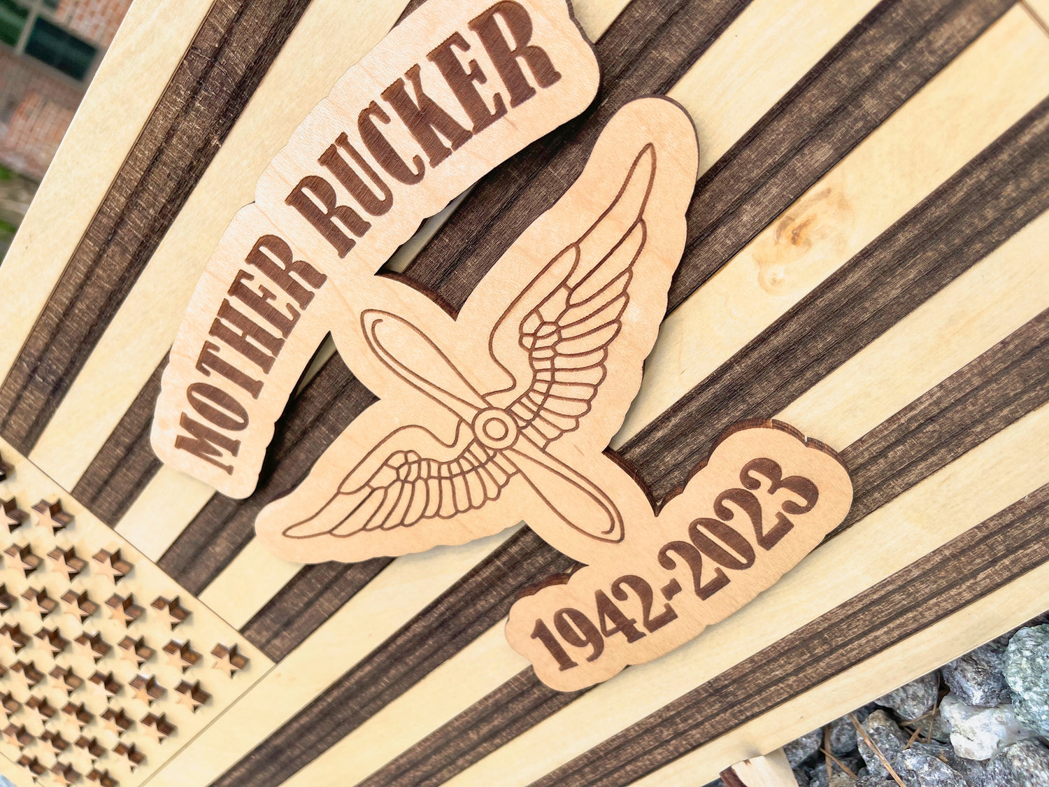 Unstained Mini American Flag Plaque - "Mother Rucker" / Plywood is backordered and will ship as soon as it is back in stock.