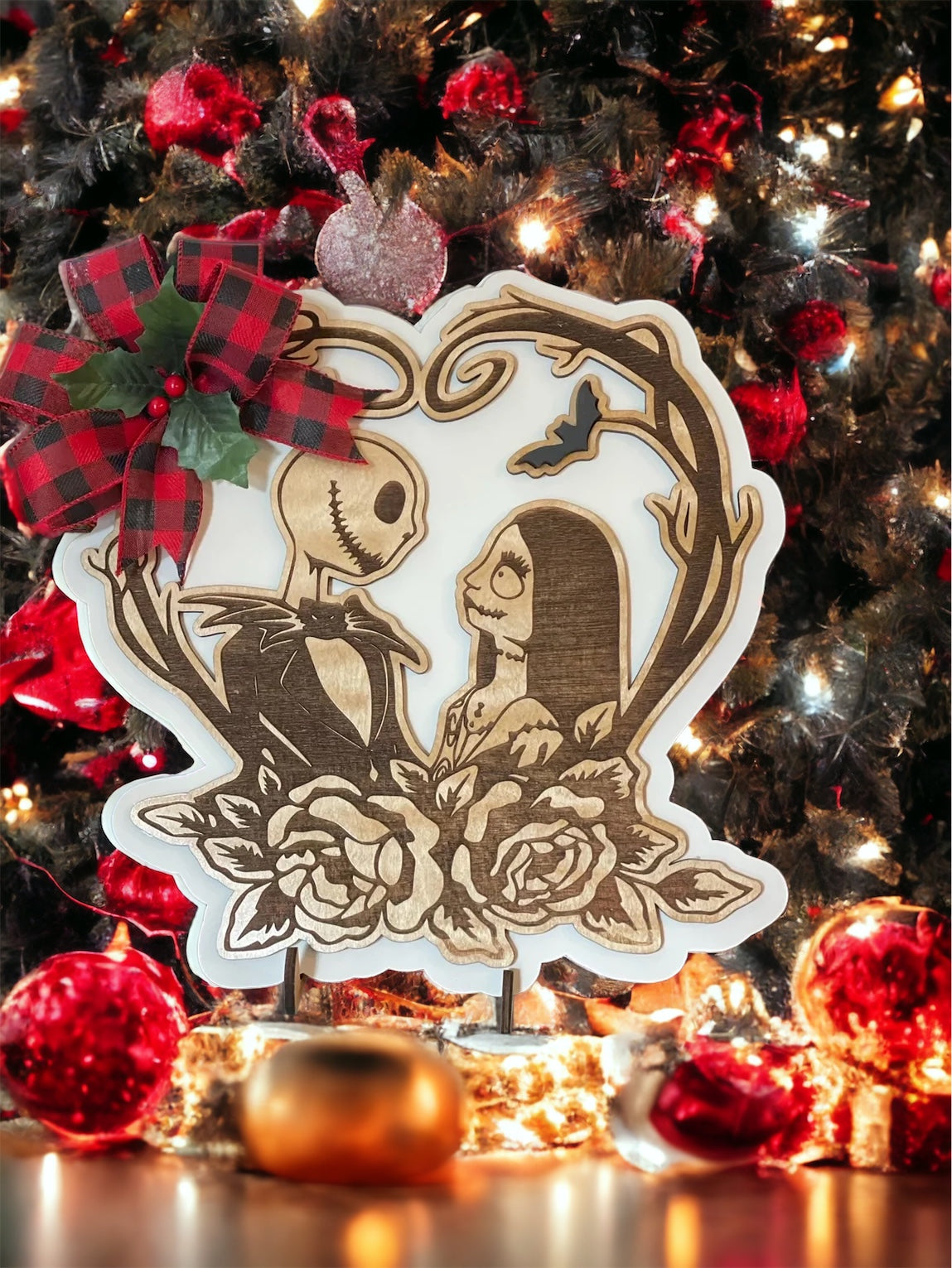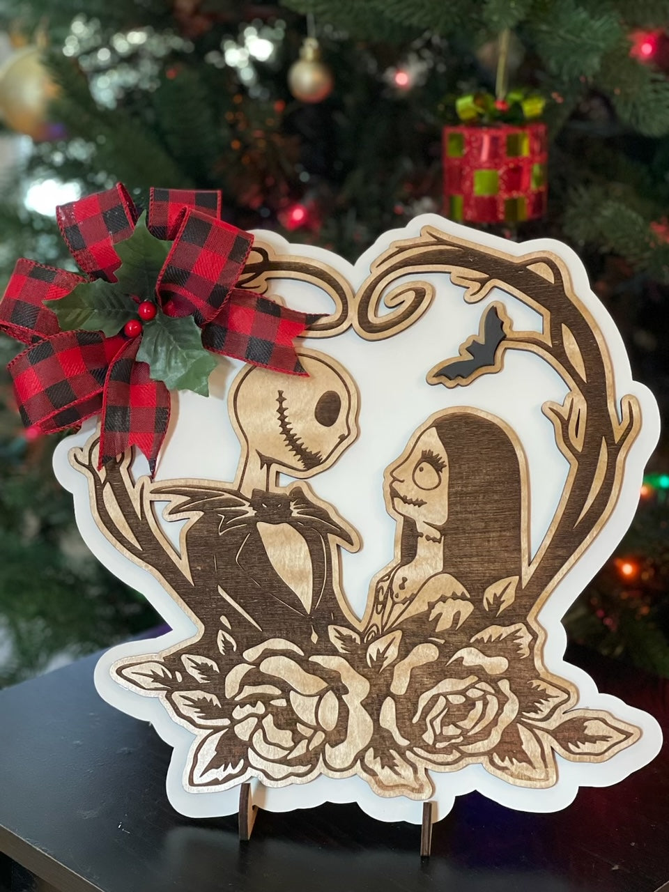 "A Love Story" - Plywood / White background/with Christmas bow is backordered and will ship as soon as it is back in stock.