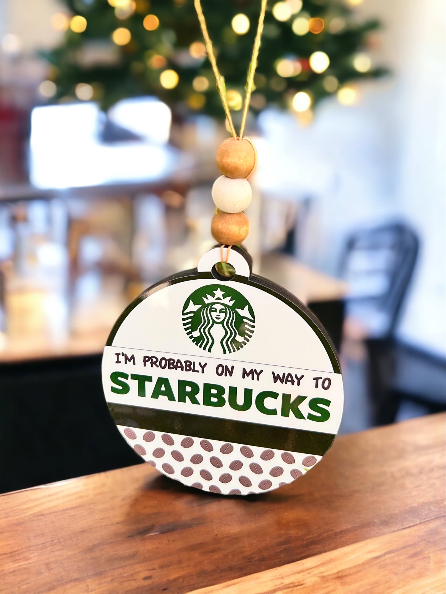 Coffee Sublimation Gifts - Starbucks Rear View Mirror Charm is backordered and will ship as soon as it is back in stock.